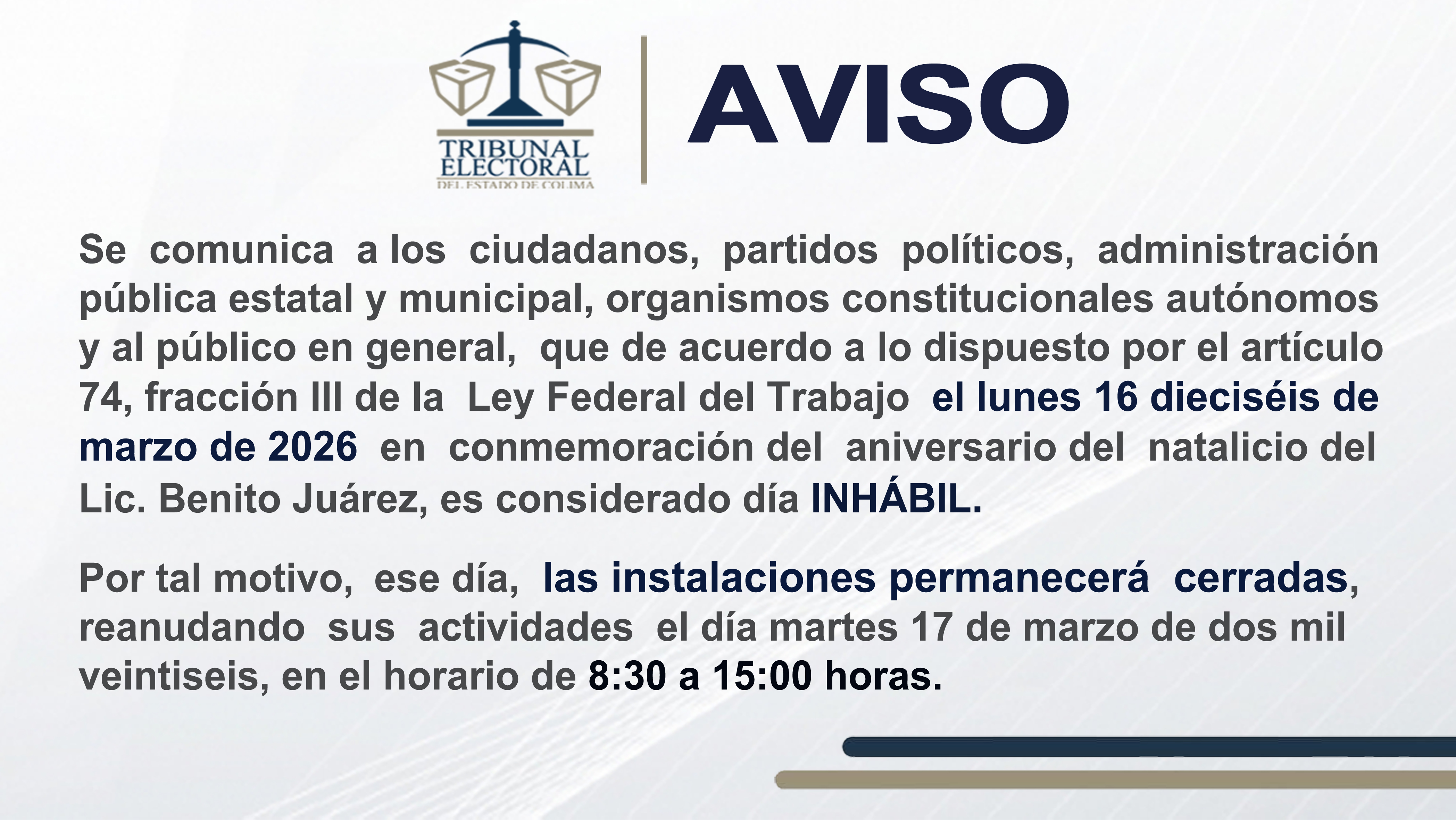 Magistrado Numerario del Tribunal Electoral del Estado de Colima. Ver Currículum »Marco Normativo