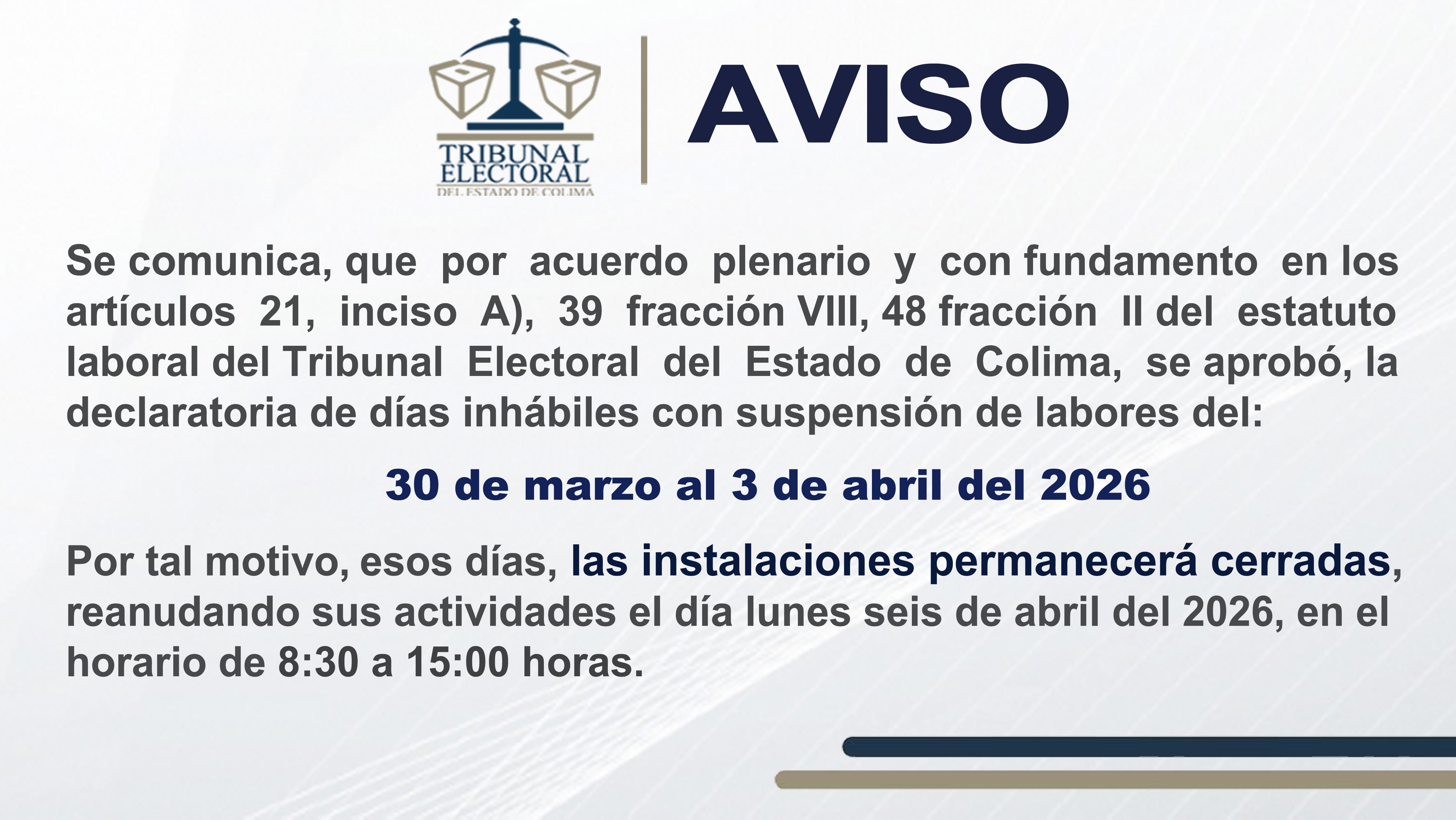 Magistrado Numerario del Tribunal Electoral del Estado de Colima. Ver Currículum »Marco Normativo